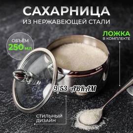 Сахарница металлическая с крышкой и ложкой, 250 мл