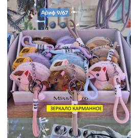 Пушистое карманное зеркало символ года Лошадка 1 шт