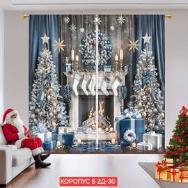 Портьеры с новогодним принтом без тюля / Ширина:2,9м Высота :2,6м