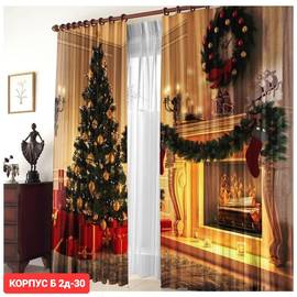 Портьеры с новогодним принтом без тюля / Ширина:2,9м Высота :2,6м