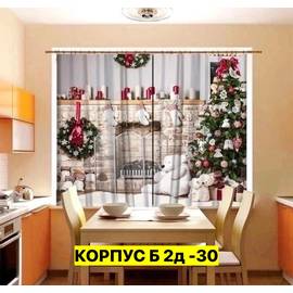 Портьеры с новогодним принтом для кухни 3*1,7 м